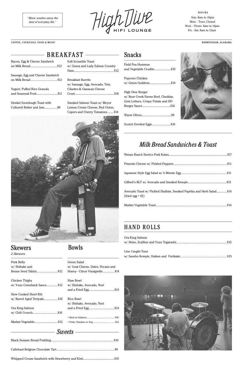 Come for a coffee, stay for a beer, enjoy the music, and order a bite from our all-day menu created in collaboration with James Beard Award-winning Chef Sean Brock.